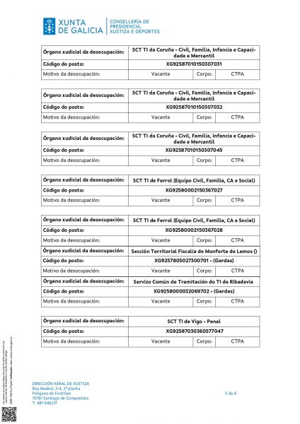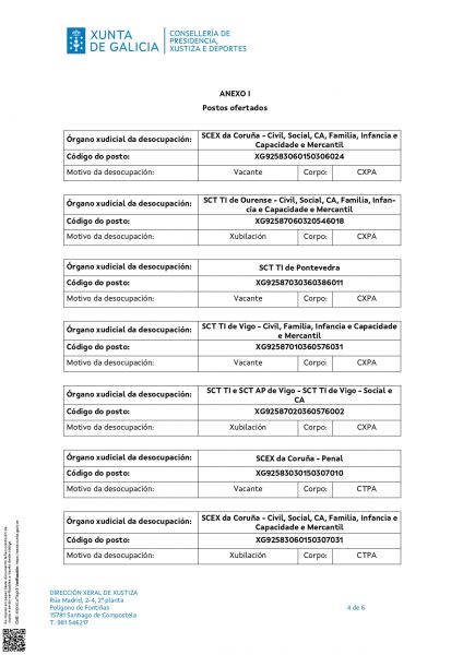 Publicouse a Resolución do 4 de febreiro de 2026, da Dirección Xeral de Xustiza, pola que se convoca a provisión en comisión de servizos de postos de traballo entre persoal funcionario dos corpos xerais.