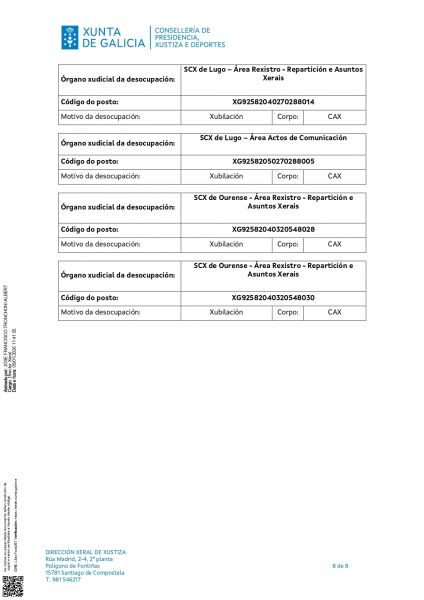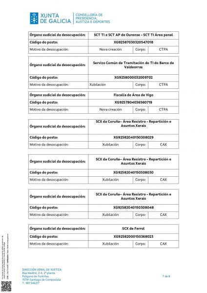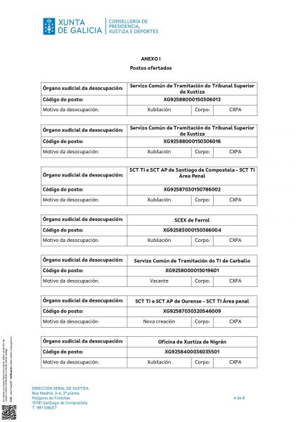 Publicouse a Resolución de 9 de xaneiro de2026 da Dirección Xeral de Xustiza, pola que se convoca a provisión en comisión de servizo de postos de traballo entre persoal funcionario dos corpos e escalas ao servizo da Administración de xustiza.