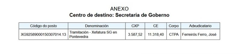 ADXUDICACIÓN DEFINITIVA DUN POSTO DE LIBRE DESIGNACIÓN DO CORPO DE TRAMITACIÓN EN PONTEVEDRA