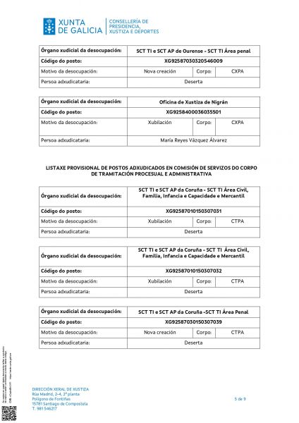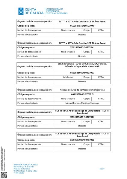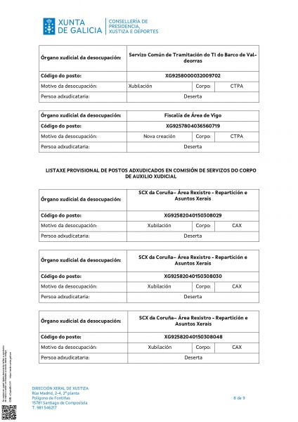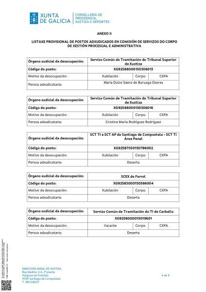 O pasado 9 de xaneiro de 2026 publicouse na intranet de Xustiza e máis na web da Consellería de Presidencia, Xustiza e Deportes a resolución da Dirección Xeral de Xustiza, pola que se convoca a provisión de postos de traballo, en comisión de servizos, entre o persoal funcionario dos corpos e escalas ao servizo da Administración de Xustiza.