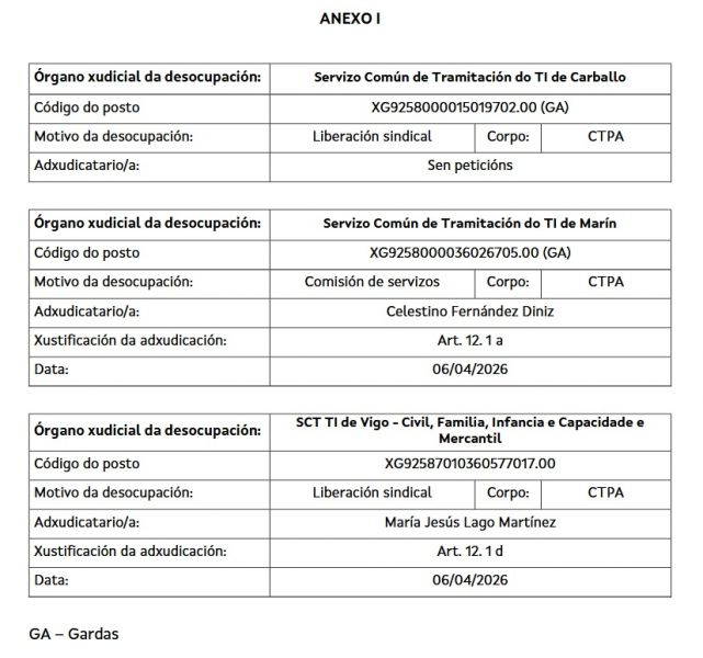 Por Resolución do 25 de marzo de 2026 a Dirección Xeral de Xustiza ven de publicar a adxudicación definitiva das prazas ofertadas.